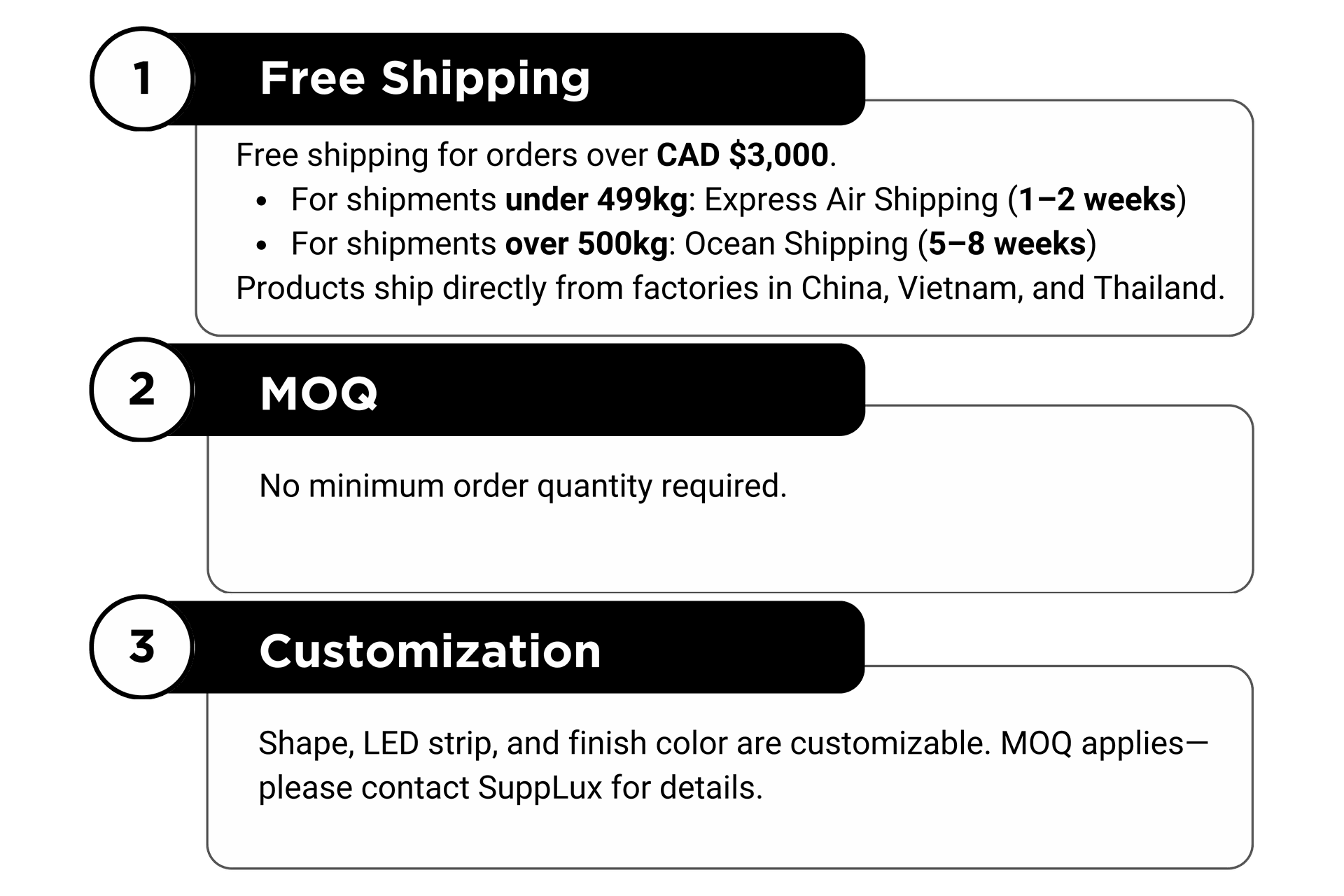 Customization: We offer custom lengths and shapes (including special angles) with no minimum order required. For custom colors, a minimum order quantity applies—please contact our team for details.